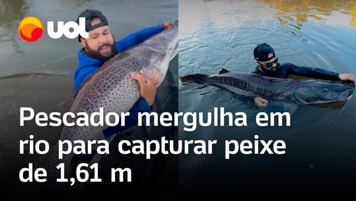 Veja Vídeo – Pescador mergulha em rio e captura peixe pintado de 1,61 metro no Mato Grosso do Sul; veja