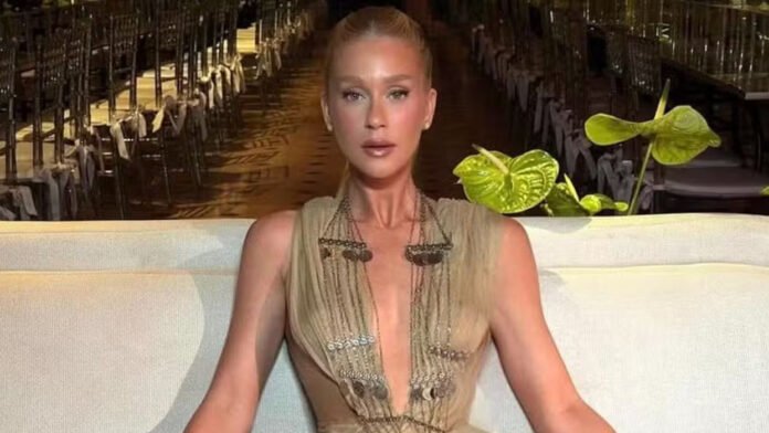 A atriz Marina Ruy Barbosa, de 30 anos, chamou atenção dos seguidores ao posar com um vestido verde claro decotado, que saiu diretamente das passarelas de 2003, do acervo de Walter Rodrigues, para um jantar de moda. Para completar o look a ruiva apostou em uma sandália prata e deixou os cabelos loiros em um rabo de cavalo.