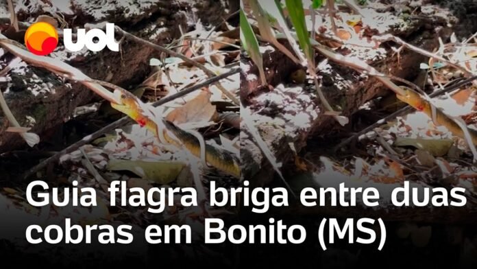 Veja Vídeo – Cobra caninana e cobra cipó brigam no MS; guia de turismo flagra embate