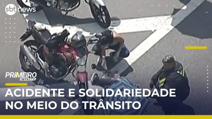Uma motorista, provavelmente da área da saúde, parou o carro no meio do trânsito para ajudar um motociclista que sofreu um acidente. O registro, capturado ao vivo pelo helicóptero do SBT, foi registrado em uma movimentada avenida de São Paulo. A vítima do acidente estava caída no asfalto, com provável fratura, e a motorista auxiliou oferecendo água, guarda-chuva para protegê-lo do sol e fez um curativo provisório na perna do rapaz. As equipes de resgate ou de trânsito ainda não estavam no local no momento do registro.