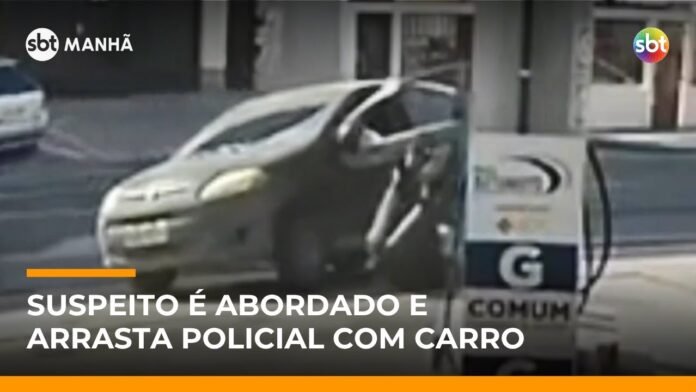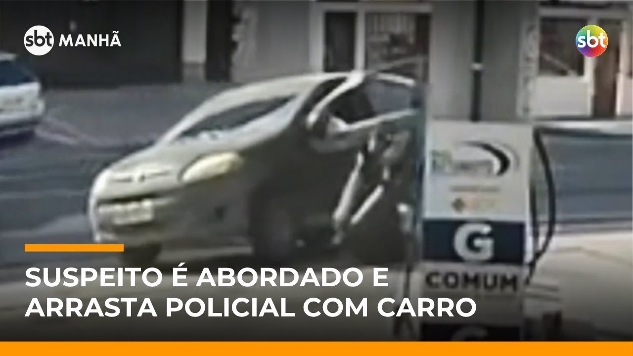 Uma abordagem policial quase terminou em tragédia em Macapá (AP). Câmeras registraram o momento em que um homem de 31 anos engata a marcha ré e acelera, arrastando um policial durante a tentativa de fuga em um posto de combustível. O agente reage e dispara contra o veículo. Outro policial chega para conter o suspeito, que foi ferido, socorrido e preso em flagrante por tráfico de drogas. A cena impressiona pela violência.
