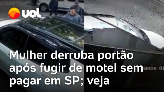 Veja Vídeo – Mulher foge de motel sem pagar, derruba portão, bate em carros e é presa em SP