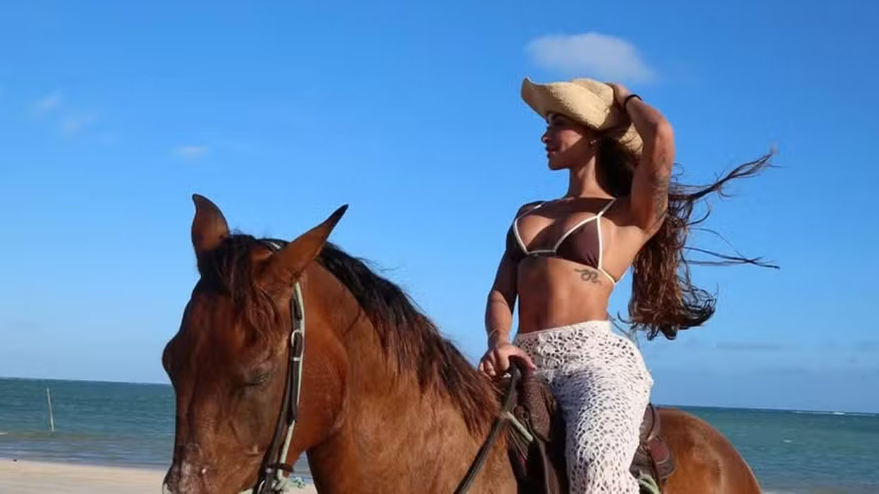 A influenciadora Tainá Militão, de 31 anos, aproveitou a quinta-feira (11), para um momento de descontração em São Miguel dos Milagres, em Alagoas. De biquíni, ela apareceu montando a cavalo à beira-mar e compartilhou os cliques com os seguidores, escrevendo.
