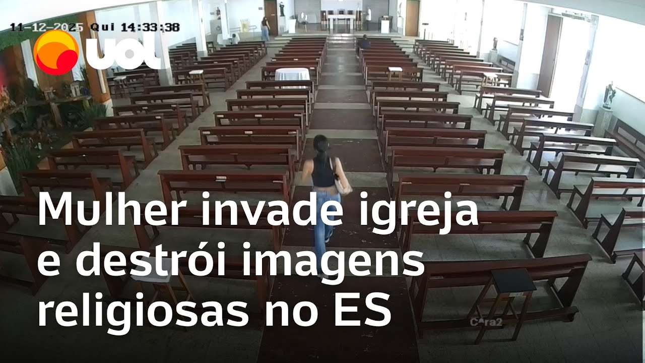 VídeosVeja Vídeo – Mulher invade igreja e destrói imagens religiosas no ES 14 de dezembro de 2025Facebook Twitter Pinterest WhatsApp As imagens foram divulgadas pela Polícia Civil e mostram a mulher entrando na paróquia, na Praia do Canto, em Vitória
