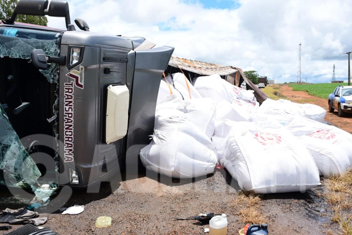 Engavetamento após tombamento deixa motorista gravemente ferido
