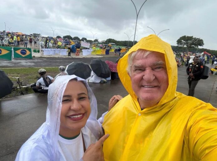 O pré-candidato ao Senado e ex-presidente da Aprosoja Brasil, Antônio Galvan, e sua esposa, a advogada e presidente do partido Democracia Cristã (DC) em Mato Grosso, Paula Boaventura, participaram do ato bolsonarista convocado pelo deputado Federal Nikolas Ferreira (PL), no domingo (25) em Brasília. Em vídeo publicado nas redes sociais, a conservadora detalhou a queda de raio na concentração e exaltou políticos da direita como enviados por Deus, comparando Nikolas a Moisés.