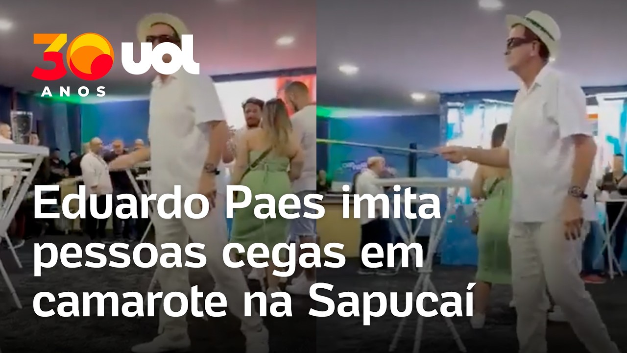 VídeosVeja Vídeo – Eduardo Paes imita pessoas com deficiência visual em camarote na Sapucaí; veja 19 de fevereiro de 2026Facebook Twitter Pinterest WhatsApp O prefeito do Rio de Janeiro, Eduardo Paes (PSD), foi flagrado imitando pessoas com deficiência visual em camarote da Marquês de Sapucaí, no domingo, 15, durante o desfile de carnaval do Rio.