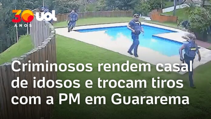 Quatro homens, com idades entre 24 e 33 anos, foram presos em flagrante por roubo na manhã de domingo (22) no bairro Luiz Carlos, em Guararema Policiais militares foram chamados para atender a ocorrência e, no local, verificaram que os autores invadiram uma casa, renderam um casal de 64 e 63 anos e, sob ameaça com arma de fogo, obrigaram as vítimas a fazer transferências bancárias