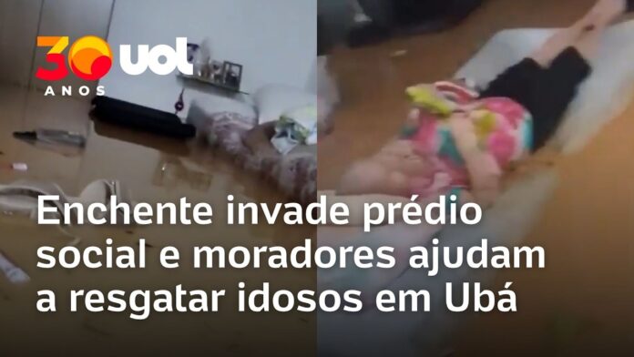 Veja Vídeo – Enchente invade prédio social e moradores ajudam a resgatar idosos em Ubá (MG)